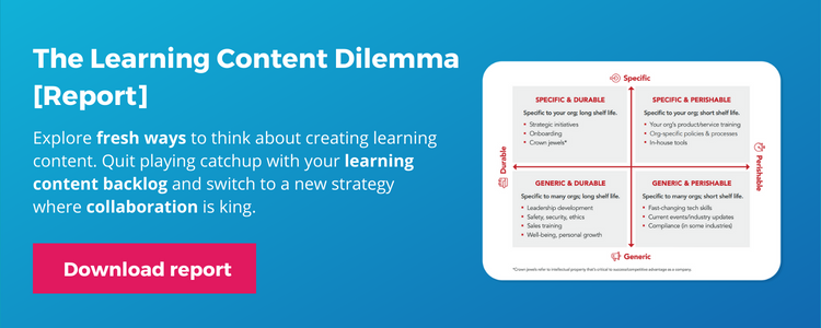 - Recognize you don’t have to do it all: The first step in tackling the learning content dilemma is acknowledging the key issue. L&D teams can’t do everything, and neither should they.