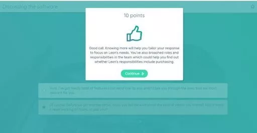 Branching is just one elearning design technique, which can be layered with other approaches to great effect – like in this sales training demo. Here we’ve added game elements to a branching scenario to increase engagement and tap into the competitive atmosphere of sales.