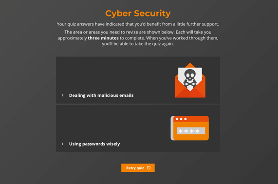 - Poor answers reveal the negative outcome of choosing incorrectly, before being asked to try the question again.